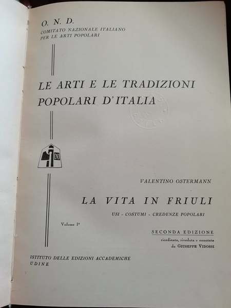 Le arti e le tradizioni popolari d'Italia I-II. La vita in Friuli. Usi, costumi, credenze popolari