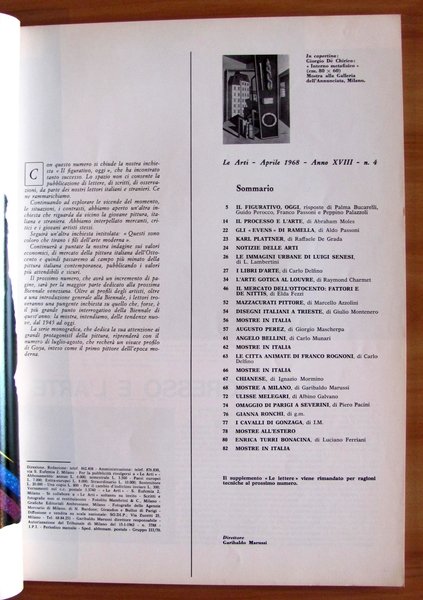 4 Riviste in blocco LE ARTI: N.12 - Dicembre 1967; Suppl. al N.1 Gennaio/Febbraio 1968 - Umberto Milani; N.3 - Marzo 1968; N.4 - Aprile 1968. Grafiche Editoriali Ambrosiane - Milano, 1967/1968. Brossure editoriali. 24,5x34; pp.80; 43; 70; 82. Tutte in Ottimo stato. ,