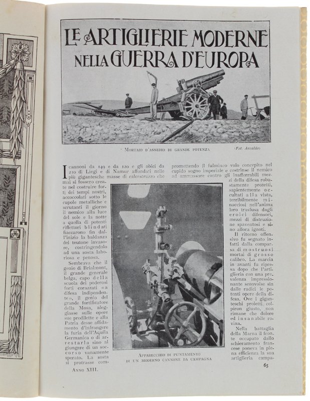 LE ARTIGLIERIE MODERNE NELLA GUERRA D'EUROPA. Estratto da Il Secolo XX - Novembre 1914.