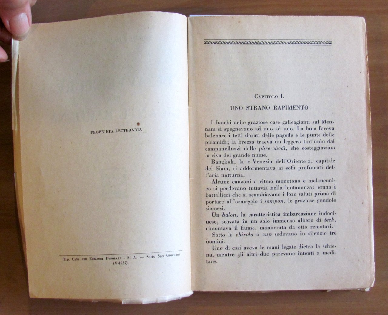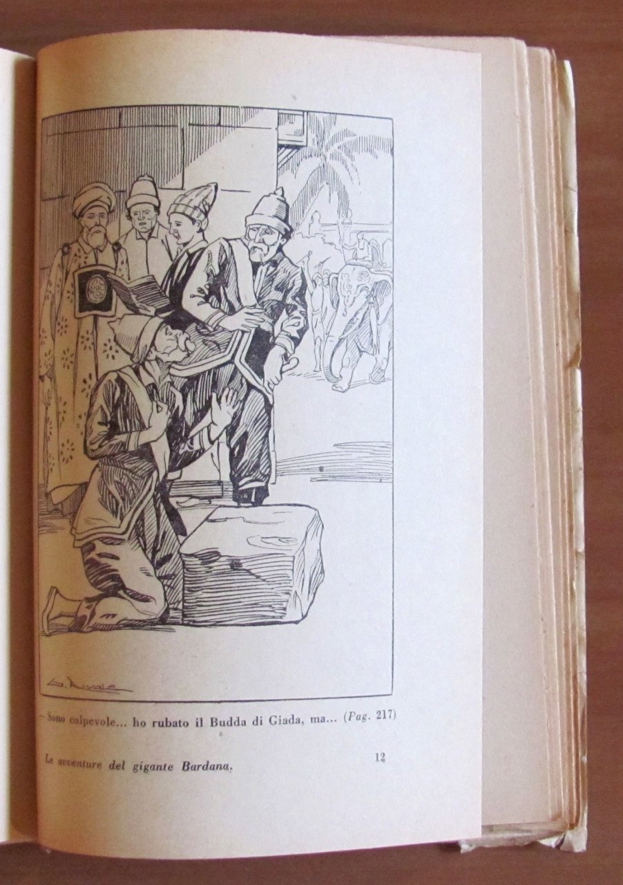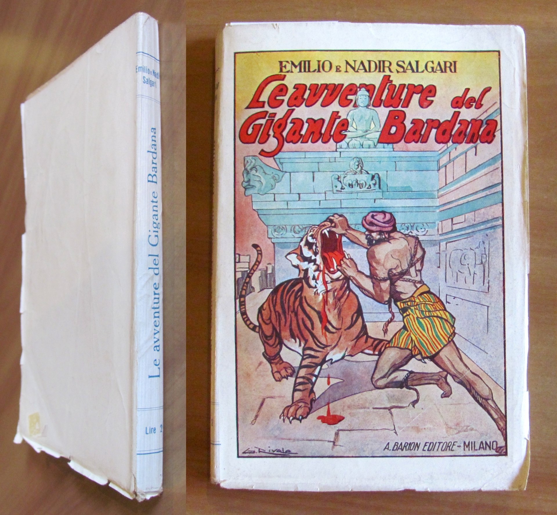 Romanzo epigono di Giovanni Bertinetti che diventerà con la Carroccio "Il Budda di Giada". Bella copertina a colori e 8 tavole in b/n f.t. di Rivolo. Editore Barion - Milano, 1935. Brossura editoriale con minime barbe ai margini delle copertine. Peraltro freschissimo e pulito. 13,5x19,5; pp.219. Molto Raro e in Ottimo stato. , Ottimo (Fine)