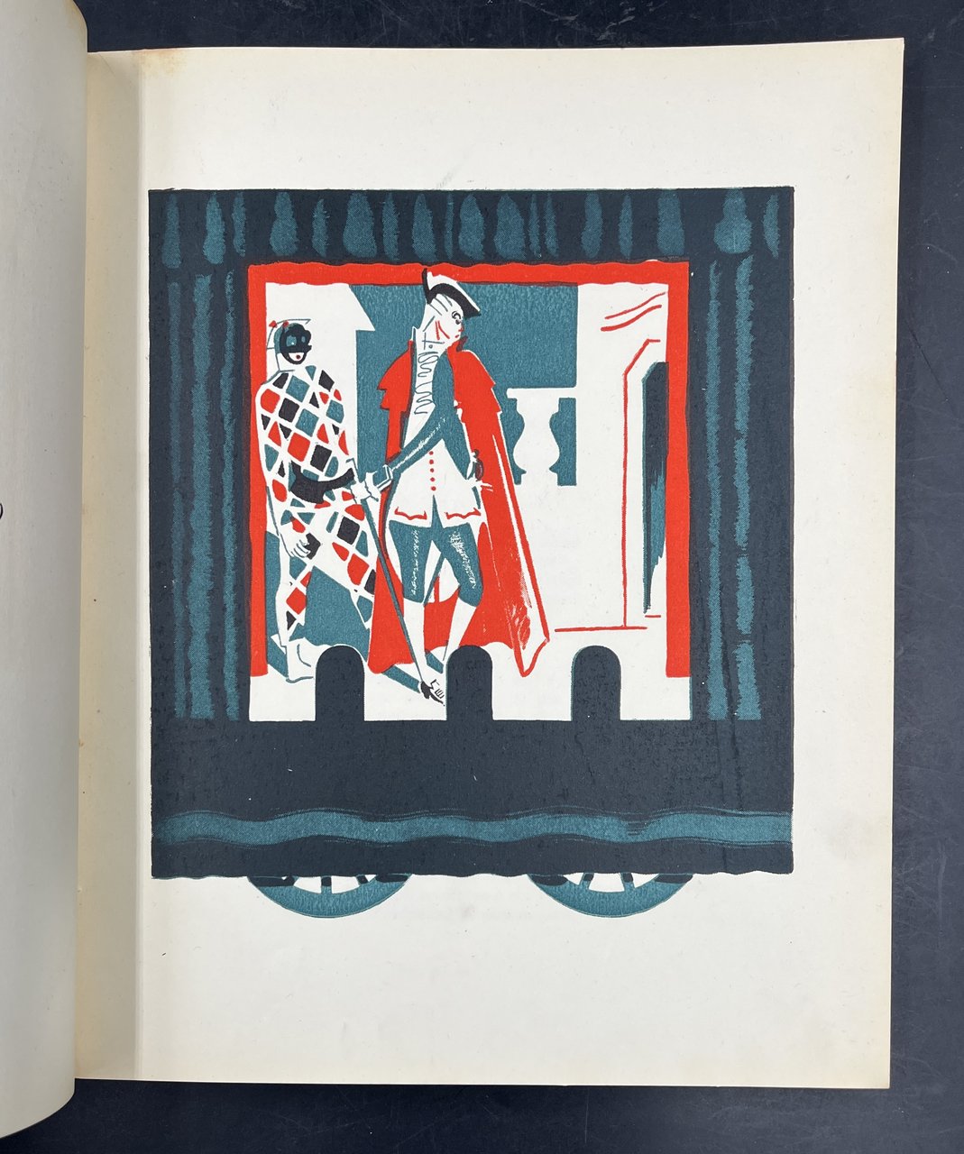 In-8° (cm. 214,7x20), pp. (20), 135, (1), Cartyone con tela rossa editoriale al dorso. 2 piccole tacche al pur solido dorso, lievi ombre ai piatti in cartone con la bella grafica e disegni a vivi colori del grande stilizzatore Filiberto MATELDI (Roma 1885-Milano 1942), autore dei 34 innovativi DISEGNI a COLORI nel testo (tra cui 9 TAVOLE a piena pagina, 13 a mezza pagina). Interno immacolato in forte carta di pregio. Dedica a penna del 1945 alla sguardia bianca, EX LIBRIS xilogr. con firma e data a penna al verso del piatto.