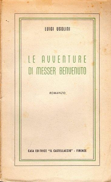Le avventure di messer Benvenuto, prima edizione novembre 1945, pp. 217, formato 13,5 x 21.<BR>Copertina morbida di colore crema con titoli in nero e verde al piatto anteriore e in nero sul dorso. <BR>Condizioni molto buone. <BR>