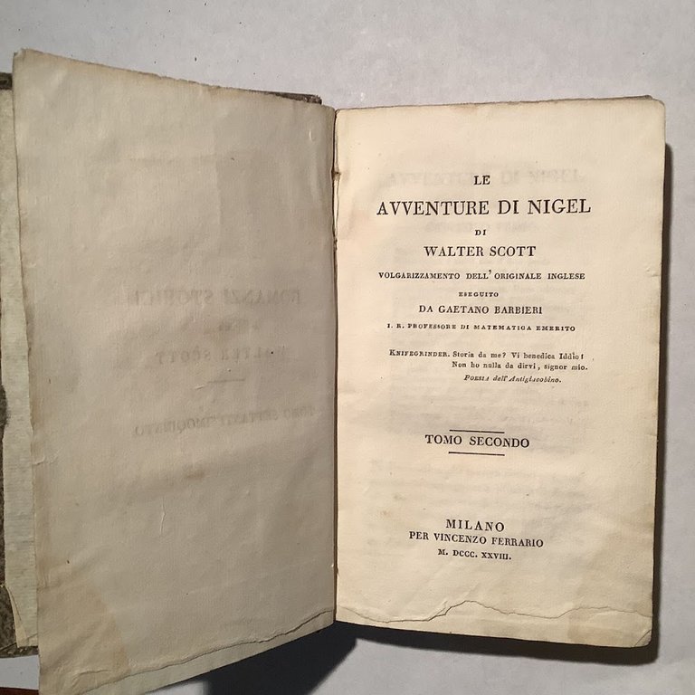 Copertina cartonata, con titolo al dorso, rigida, usurata,sporca e ingiallita, dorso usurato, cucitura compromessa. Tagli e pagine sporchi di polvere e ingialliti, con segni d'umidità. Collana:"Romanzi storici di Walter Scott tomo 70 quinto". 371 Mediocre (Poor) .
