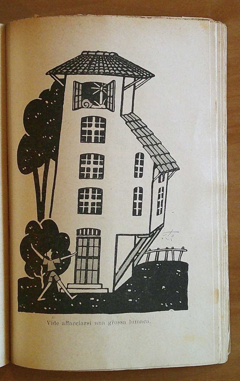 Edizione popolare. Bella copertina in tricromia di Mussino e illustrazioni in b/n n.t., anche a piena pagina, di STO (Sergio Tofano). Ed. Bemporad - Firenze, s.d. ma 1921. Brossura editoriale con piccola imperfezione alla cuffia inferiore del dorso restaurata professionalmente. 12,5x19; pp.237. Molto Raro e in Ottimo stato. , Ottimo (Fine)