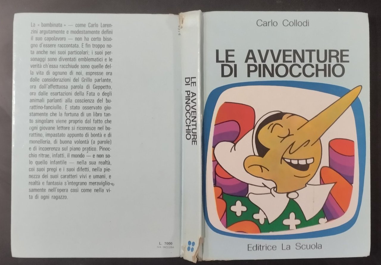 LE AVVENTURE DI PINOCCHIO di Carlo Collodi La Scuola Editore, 1971 . 187 pagine, numerose illustrazioni a colori fuori testo di Carlo Ciferri. Copertina editoriale in brossura. Stato di conservazione: molto buono (pagine normalmente ingiallite, firma di appartenenza, ammaccature al dorso) Libro usato saggistica