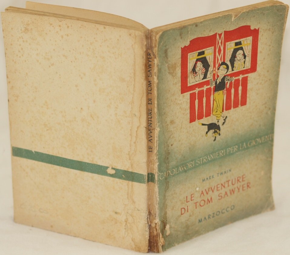 In 8. Dim. 21x14 cm. Pp. 177+(1). Edizione del 1950 del celebre romanzo per ragazzi dello scrittore americano Mark Twain (1835-1910). L'opera venne pubblicata per la prima volta nel 1876. Traduzione di T. Orsi e B. C. Rawolle. Illustrazioni su planches fuori testo di Roberto Lemmi. In buone condizioni. Copertina editoriale in buone condizioni generali con lievi usure ai margini e dorso. Gore d'umidità. Legatura in buone condizioni con rotture. All'interno le pagine si presentano in buone condizioni con fioriture. Carta applicata al piatto posteriore. Edition of 1950 of the famous novel for teenagers written by the american writer Mark Twain (1835-1910). The work was published for the first time in 1876. Translation by T. Orsi and B. C. Rawolle. Illustrations on out of text planches by Roberto Lemmi. In good conditions. Editorial cover in good general conditions slightly worn in the edges and spine. Humidity stains. Binding in good conditions with cracks. Inside pages are in good conditions with foxings. Paper applied in the back plate.