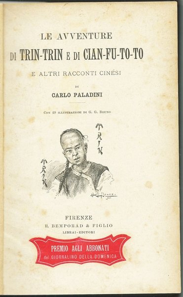Bella copertina a colori, 49 illustrazioni in b/n n.t. e 26 tavole in b/n f.t. di G. G. Bruno. Editori Bemporad & Figlio - Firenze, 1901. Rilegatura coeva in tela con tassello con titoli a dorso e copertina originale applicata al piatto. Minime fioriture a qualche pagina. 17x24,5; pp.254. Contiene alcuni racconti a carattere Fantastico!! Raro, Buonissimo stato. , Molto buono (Very Good)