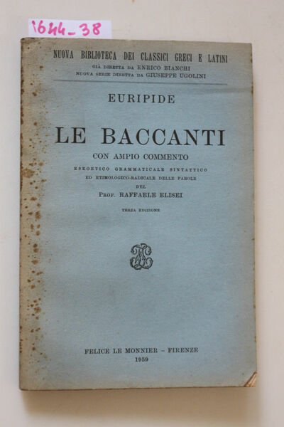 (Collana : Nuova biblioteca dei classici greci e latini già diretta da Enrico Bianchi. Nuova serie diretta da Giuseppe Ugolini) Con ampio commento esegetico, grammaticale, sintattico ed etimologico-radicale delle parole del Prof. Raffaele Elisei - DETTAGLIO DELLE CONDIZIONI : Le pagine sono ingiallite con numerosi segni del tempo - (1.IV.8).