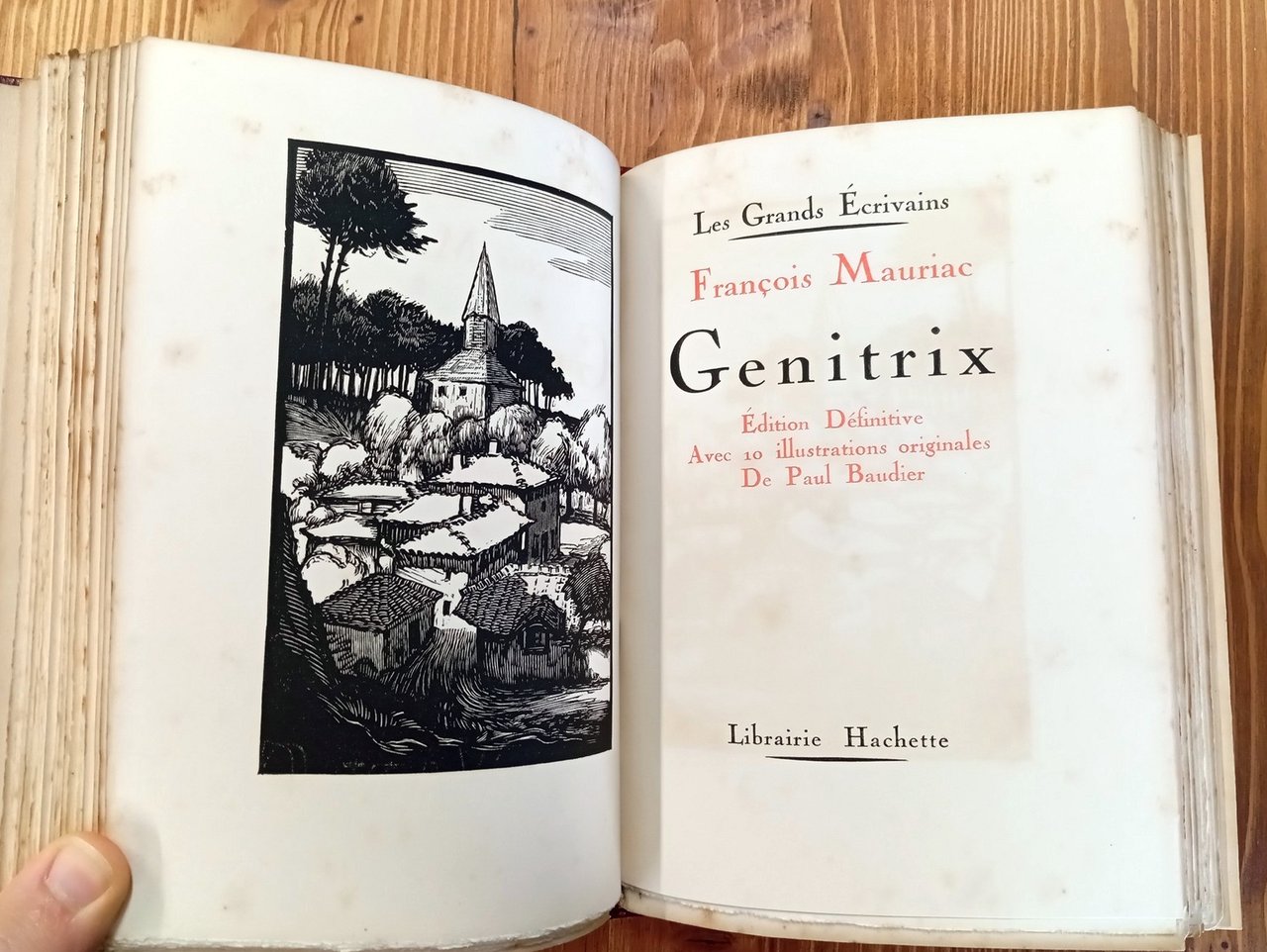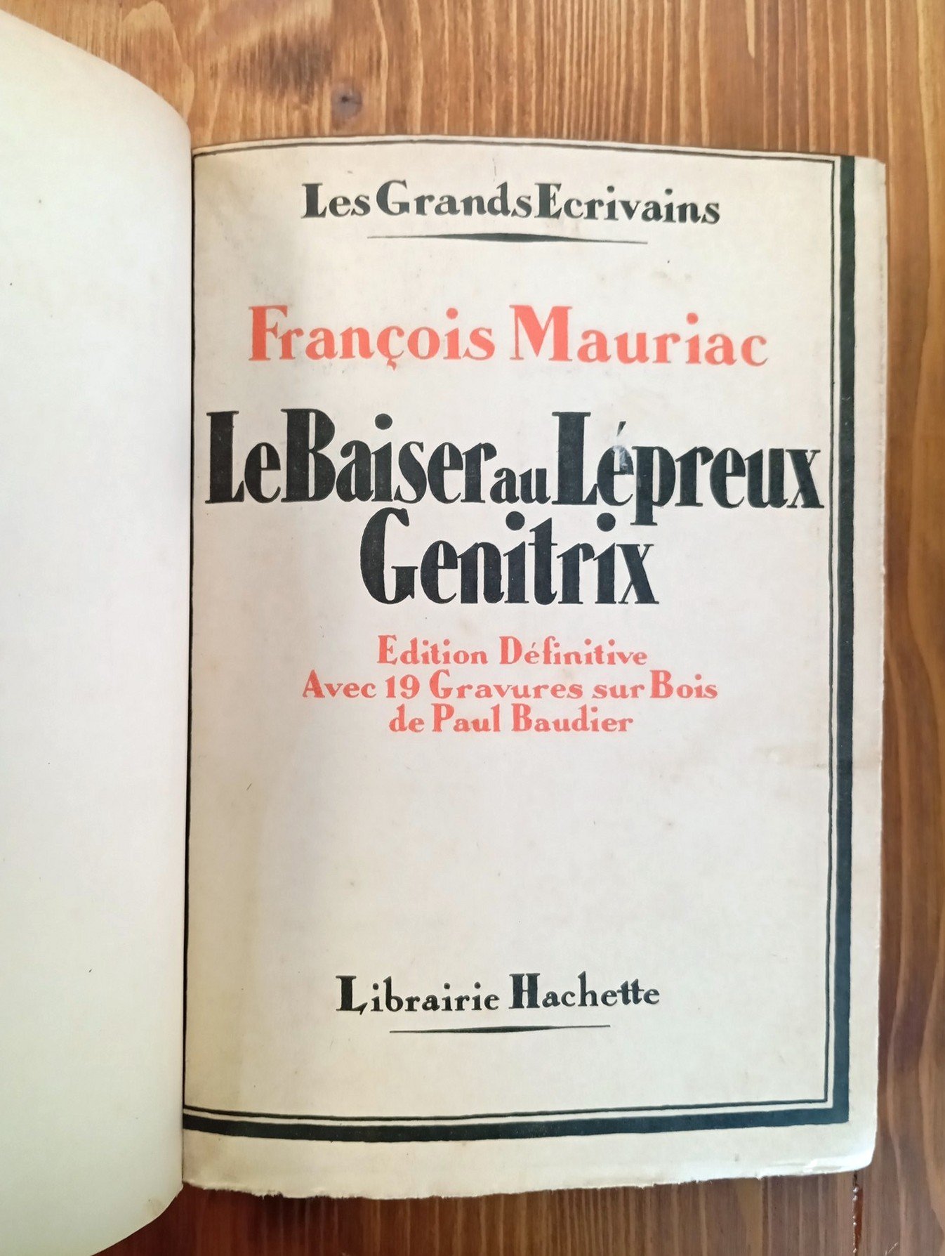 Édition définitive. Exemplaire sur papier de Hollande non destiné au commerce - Volume rilegato in solida mezza pelle rossa-bordeaux con titolo in oro e nervature al dorso, all'interno due opere rispettivamente di 123 e 144 pagine con 19 belle xilografie in nero di Paul Baudier. Conservato all'interno il piatto anteriore originale. Leggere fioriture alle carte, ma nel complesso esemplare in buone-ottime condizioni.