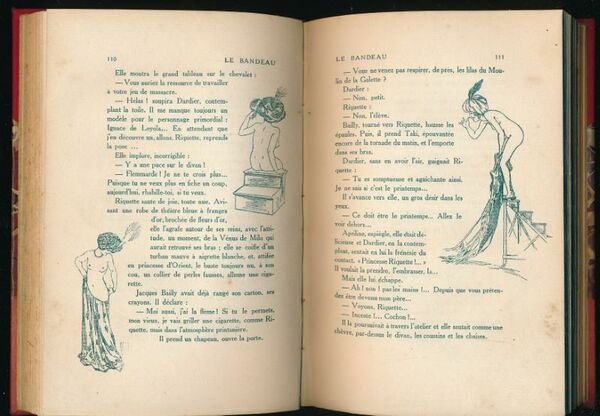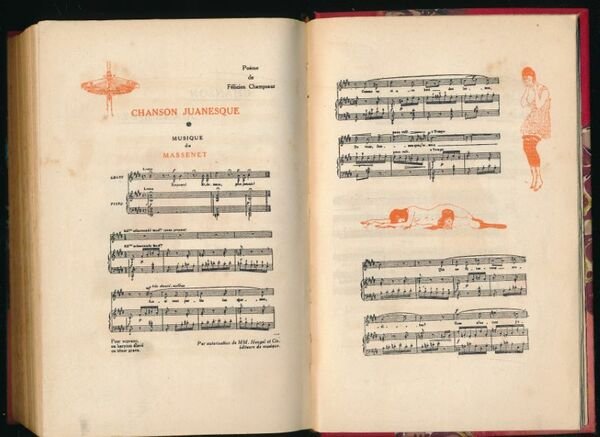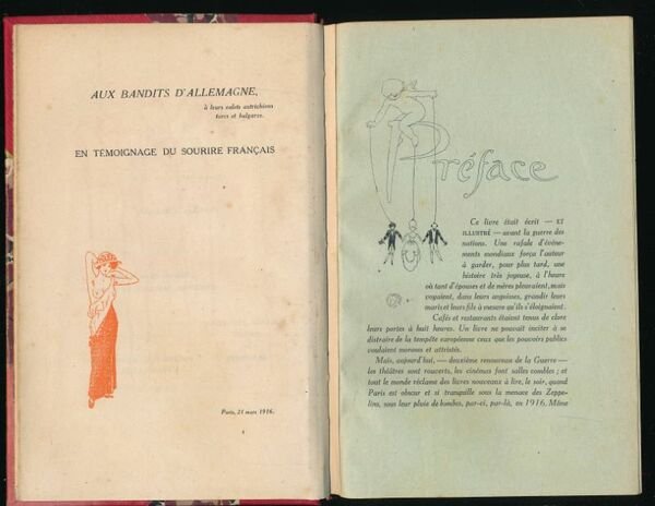 Mignot éditeur 1916 Mignot éditeur, 1916. In-8 relié demi-toile rouge à coins, Dos lisse, titre doré. Couverture conservée. (Une tache au premier plat de couverture). 358 pages. 326 dessins par Raphaël Kirchner, 8 hors-texte par Chimot, Jean Dardier, Kirchner, Maurice de Lambert, Chansons Juanesque mélodie de Massenet, vignettes de Benedictus, Morin, Orazi, Fabius Lorenzi. Reliure légèrement passée et quelques petites rousseurs sinon bon état