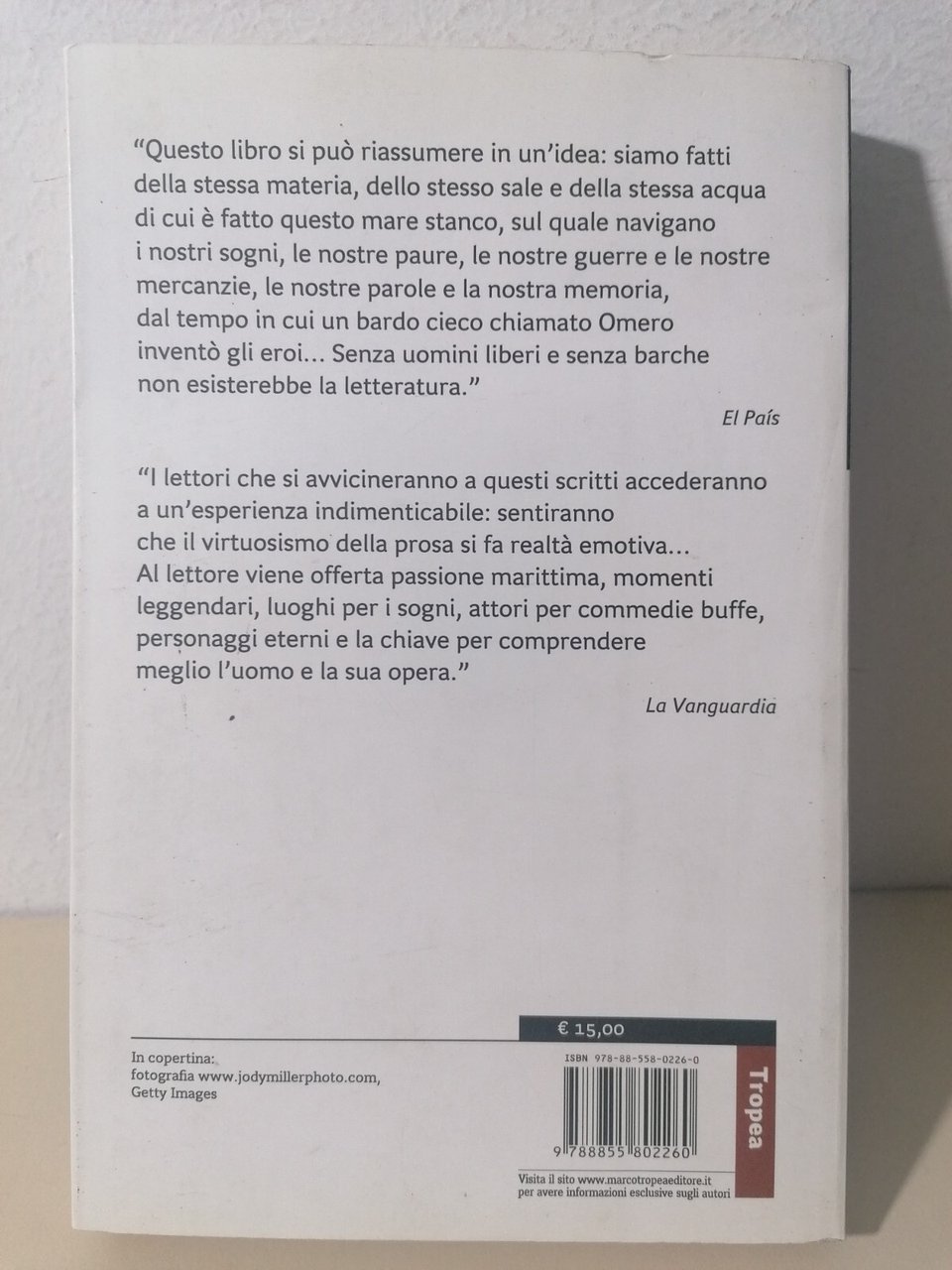 Editore: Marco Tropea Editore Collana: I narratori Traduttori: Mogavero E., Carraro G. Data di Pubblicazione: Prima edizione 2012 EAN: 9788855802260 ISBN: 8855802267 Pagine: 323 Condizioni: più che buone 2H-2-2 Descrizione del libro È un'antica e bruciante passione, quella che Arturo Pérez-Reverte nutre per il mare: da sempre ne studia la storia, la letteratura e le leggende, oltre che percorrerlo come esperto navigatore. Questo volume raccoglie novantasei testi dello scrittore spagnolo sul tema. Si tratta di una multiforme indagine fra gli abissi, con una chiara predilezione per l'amato Mediterraneo: c'è il sangue che scorre dagli ombrinali, ci sono Omero, Stevenson e Mac Orlan, Conrad, Melville e O'Brian, e la meteorologia, le tempeste perfette, la difesa del tonno e delle balene, le avventure con le lance dei guardacoste. Il mare attrae irresistibilmente a sé Pérez-Reverte per la sua bellezza indomita e anche per la sua crudeltà...