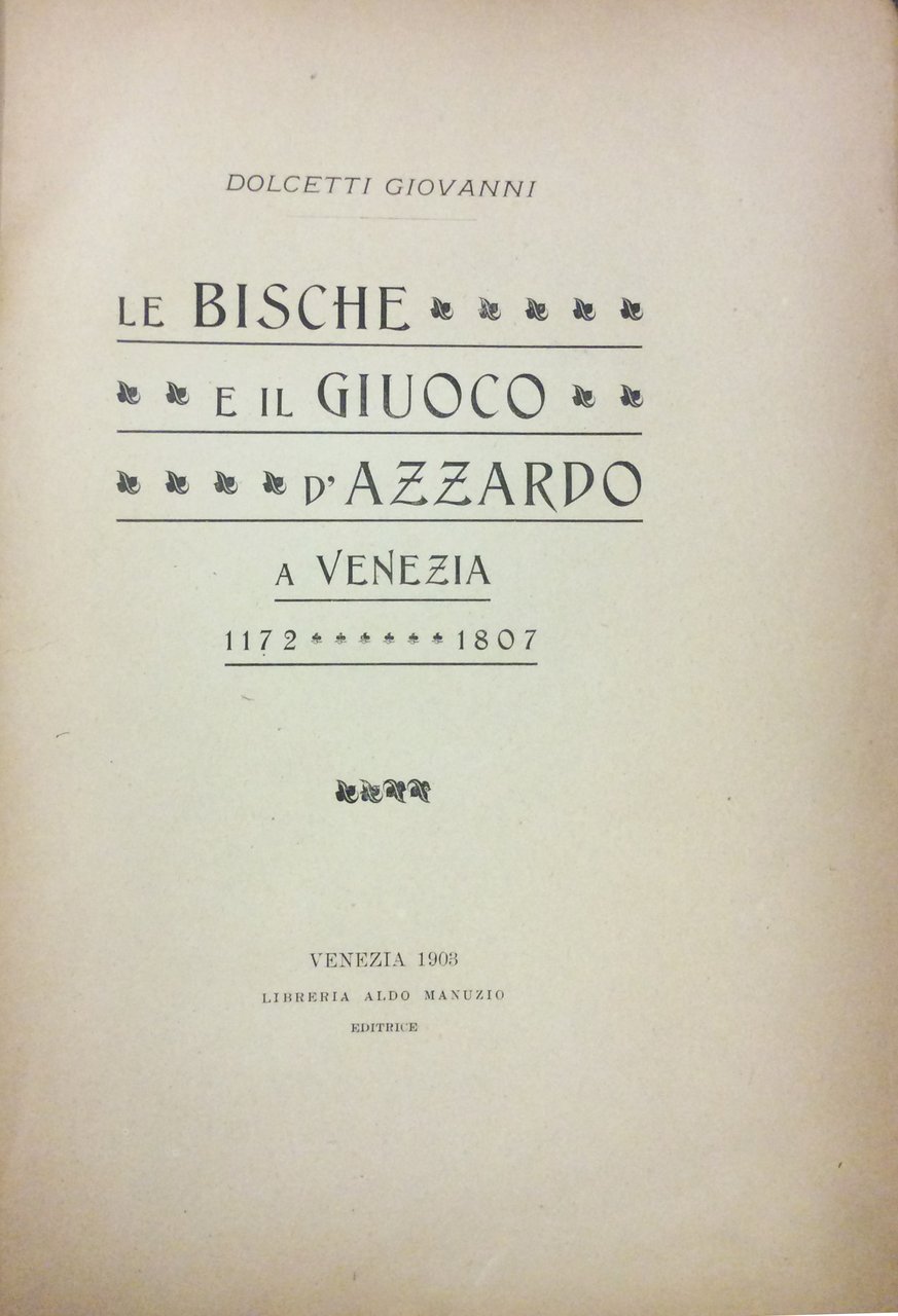 LE BISCHE ED IL GIUOCO D'AZZARDO A VENEZIA. - 1172-1807.