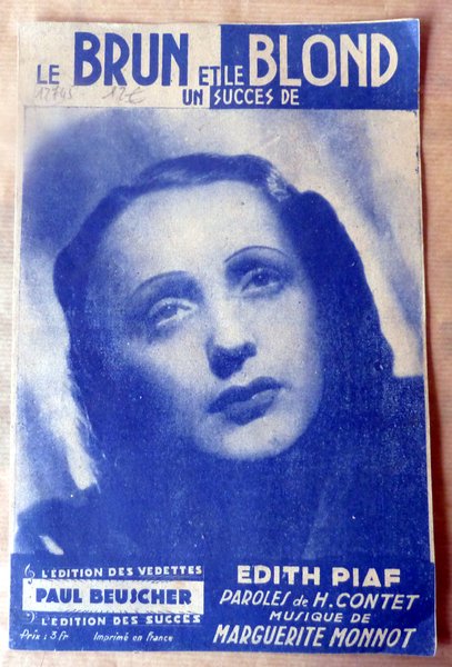 Le Brun et Le Blond; un succès d'Edith Piaf. Partition parole et musique complète+ tablature pour guitare.