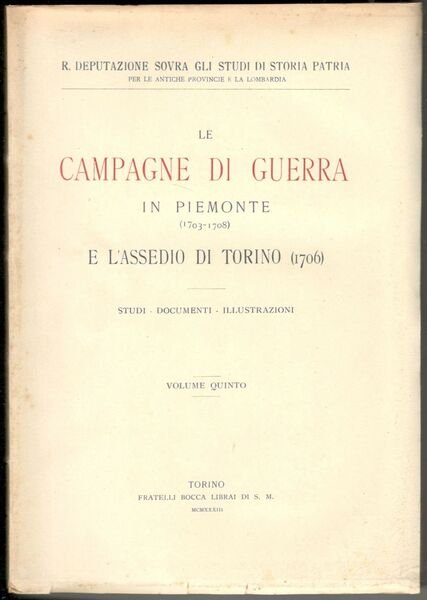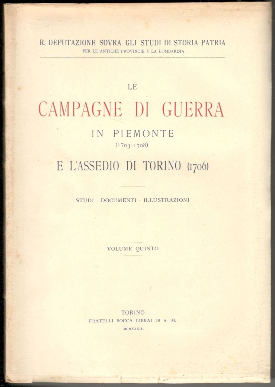 Le campagne di guerra in Piemonte (1703-1708) e l'assedio di Torino (1706). Studi - Documenti - Illustrazioni. Volume quinto