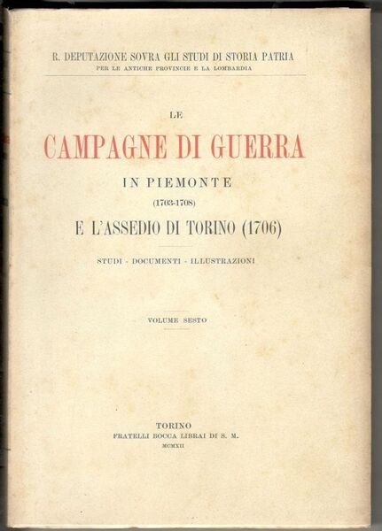 Le campagne di guerra in Piemonte (1703-1708) e l'assedio di Torino (1706). Studi - Documenti - Illustrazioni. Volume sesto