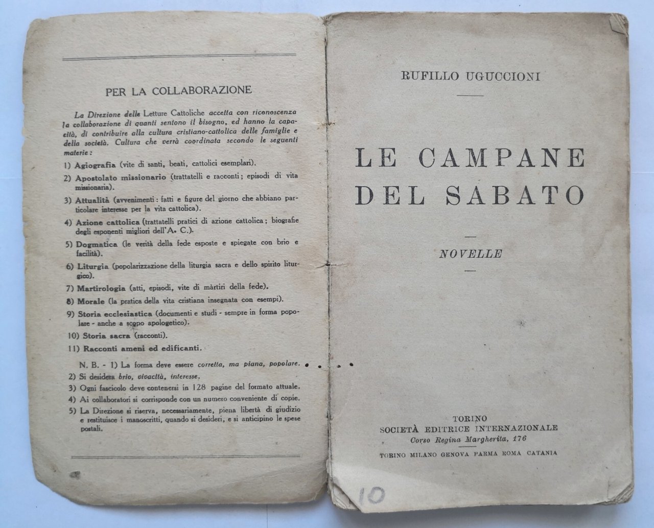LE CAMPANE DEL SABATO novelle di Rufillo Uguccioni 1932 SEI Libro Novelle