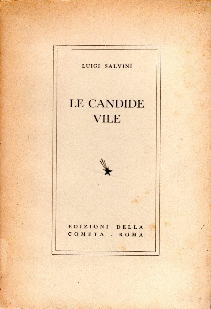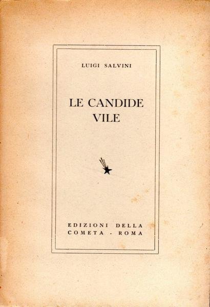 Le candide vile, prima edizione febbraio 1941, pp. 68, formato 13 x 19. <BR>Copertina morbida di colore beige con titoli in nero al piatto anteriore e sul dorso. Tiratura limitata in 350 esemplari, nostro n. 187. <BR>Dorso leggermente brunito. Nel complesso ottime condizioni.