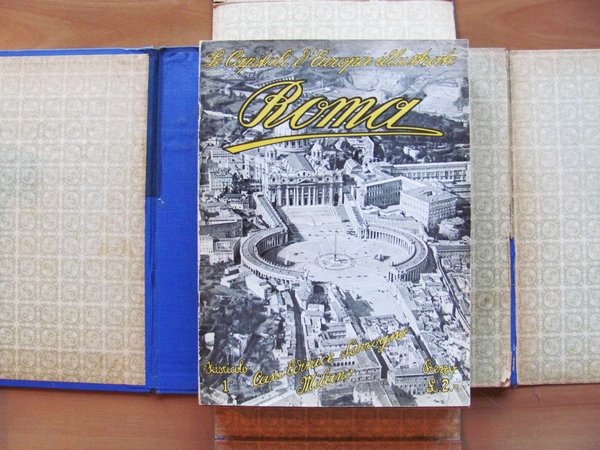Opera completa di 23 fascicoli con custodia in tela originale. Ogni fascicolo contiene circa 50 illustrazioni fotografiche dei principali monumenti, edifici, piazze, strade, chiese, panorami ecc. di ciascuna Capitale Europea e un testo accurato descrivente ogni Capitale nel suo passato e nel suo presente, sotto l'aspetto storico, artistico, industriale, commerciale, politico e civile. Magnifica collezione illustrata, composta di 23 fascicoli di 32 pagine ciascuno, in carta di lusso, con copertina a colori. Casa Editrice Sonzogno - Milano, I edizione 1930 ca. Elenco dei Fascicoli: Roma, Parigi, Londra, Berlino, Vienna, Budapest, Bruxelles, Amsterdam e l'Aia, Madrid, Lisbona, Atene, Costantinopoli, Sofia, Belgrado, Bucarest, Berna, Praga, Varsavia, Stoccolma, Oslo, Copenaghen, Reykjavik, Mosca. Capitali Baltiche: Danzica, Kaunas, Riga, Tallin, Helsingfors. Capitali minori: Dubino, Lussemburgo, Monaco, San Marino, Tirana, Andorra. Custodia originale cartonata con ali, richiudibile, in tela. Lievi usure della tela alle cerniere del dorso. Fascicoli interni in Stato di Nuovo. 22x29,5; pp.735 complessive. Buonissimo stato. , Molto buono (Very Good)