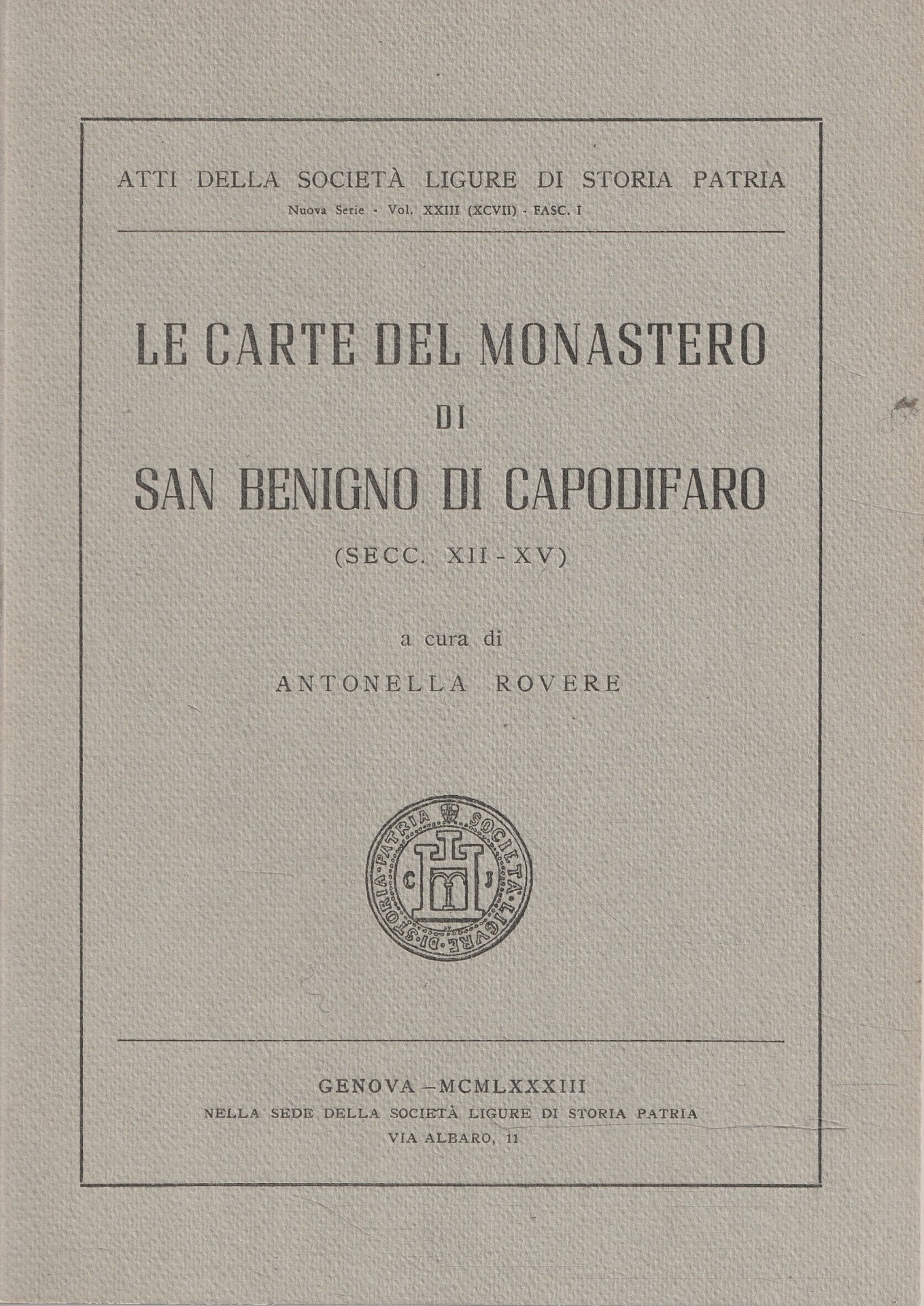 AP.45Brossura editoriale,Atti della Società Ligure di Storia Patria, volume in ottime condizioni, copertina e interno in ottimo stato, legatura salda , 282 pagine circaCopertina come da foto