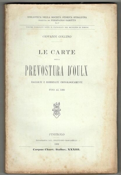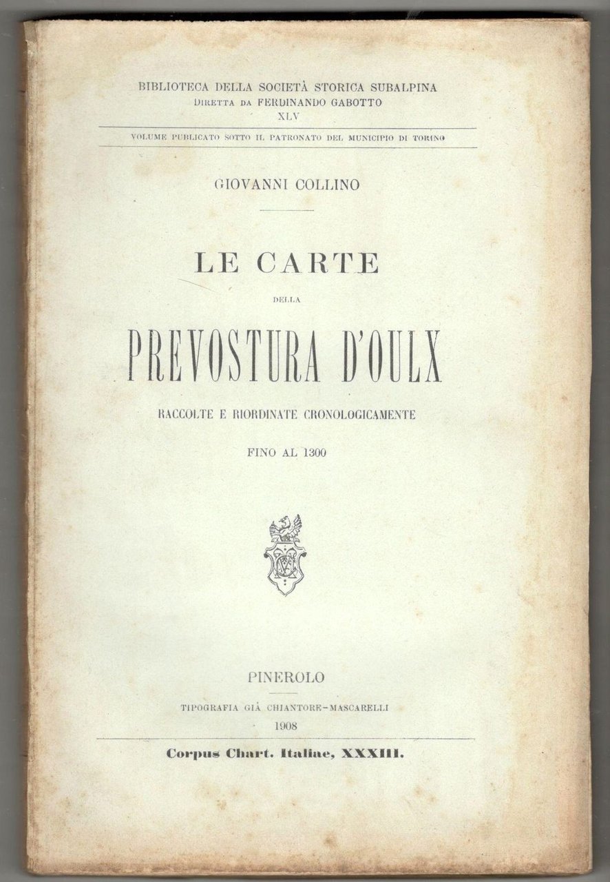In 8°, pp. XVI, 411, (1). Brossura editoriale. Copertina con dorso e bordi ingialliti, per il resto copia in ordine, interamente a fogli chiusi. Biblioteca della Società Storica Subalpina, vol. XLV. Corpus Chart. Italiae, XXXIII.