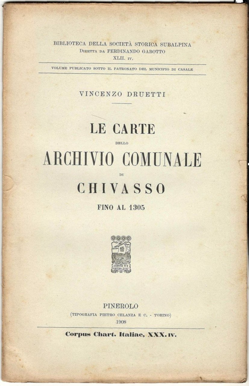 In 8°, pp. da 275 a 310. Brossura editoriale. Copertina con i bordi ingialliti, per il resto copia in ordine, interamente a fogli chiusi. Volume pubblicato sotto il patronato del comune di Casale. Biblioteca della Società Storica Subalpina diretta da Ferdinando Gabotto, XLII, IV. Corpus Chart. Italiae, XXX, IV.