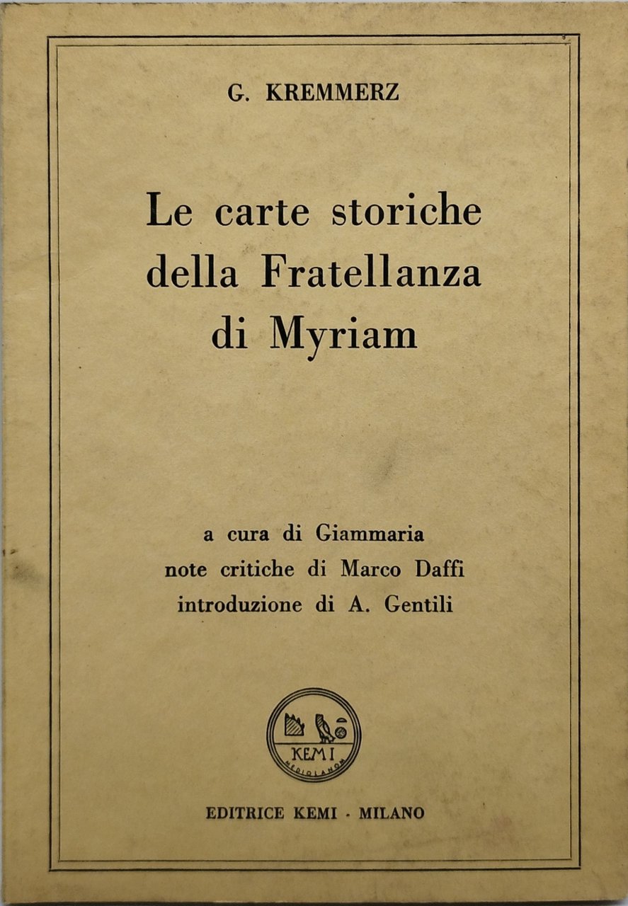 g.kremmerz le carte storiche della fratellanza di myriam. , editrice kemi 1980 italiano, 88 °°°
