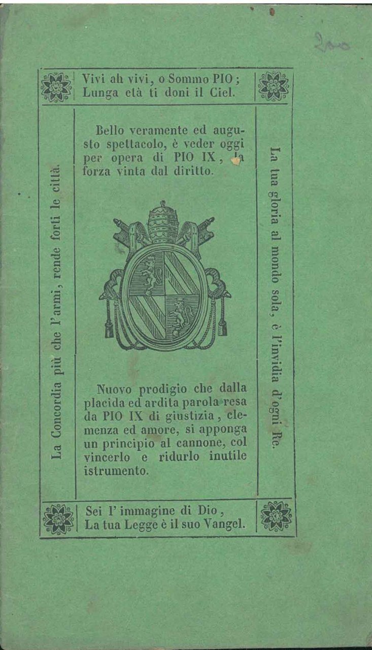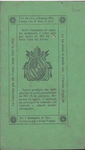 Le celesti ispirazioni di Pio Nono pel bene generale del popolo. Anno primo del suo prodigioso pontificato, coll'aggiunta di alcune preghiere per la prosperità e conservazione del sommo capo della Chiesa e di tutti i superiori ecclesiastici. Terza edizion