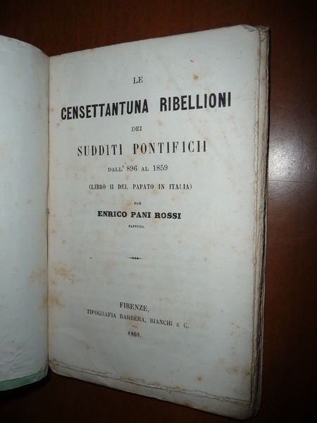 LE CENSETTANTUNA RIBELLIONI DEI SUDDITI PONTIFICII DAL'896 AL 1859 LIBRO II 1860