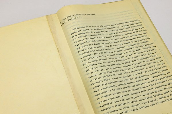 Tre pagine dattilografate aggiunte dal primo proprietario incollate alla terza di copertina.