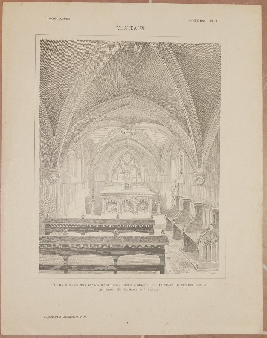 LE CHATEAU DES PINS CANTON DE SELLES SUR CHER (LOIR ET CHER) LA CHAPELLE VUE PERSPECTIVE ARCHITECTES: MM. ED. DUMONT ET A. LAFARGUE