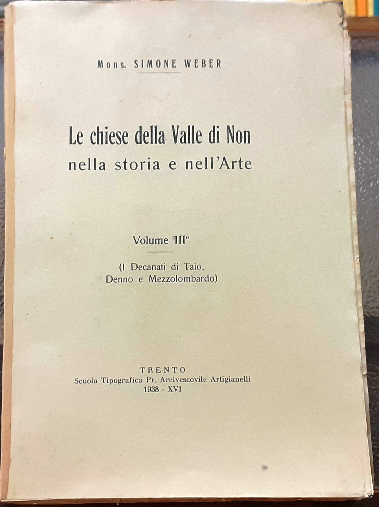 LE CHIESE DELLA VALLE DI NON NELLA STORIA E NELL'ARTE. Volume III°. (I DECANATI DI TAIO-DENNO E MEZZOLOMBARDO).