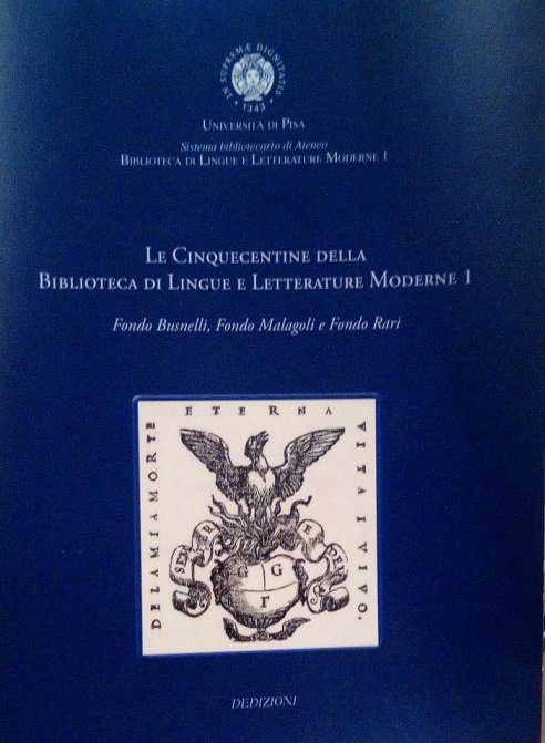 LE CINQUECENTINE DELLA BIBLIOTECA DI LINGUE E LETTERATURE MODERNE 1 UNIVERSITA' DI PISA - FONDO BUSNELLI, FONDO MALAGOLI E FONDO RARI