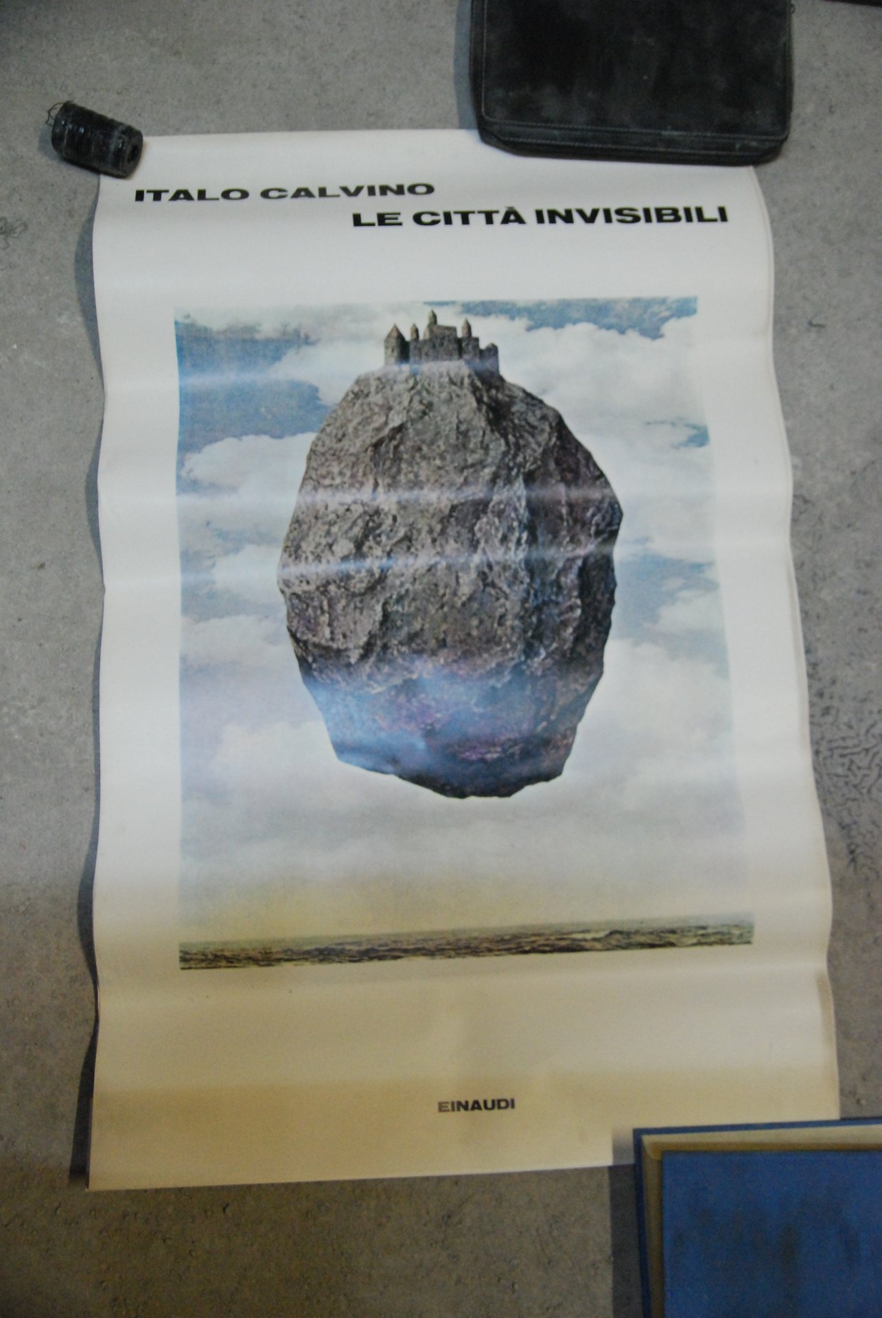 locandina pubblicitaria manifesto del libro di italo calvino le città invisibili. einaudi .