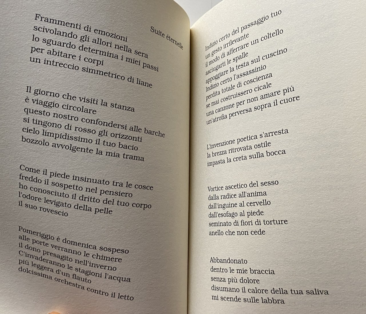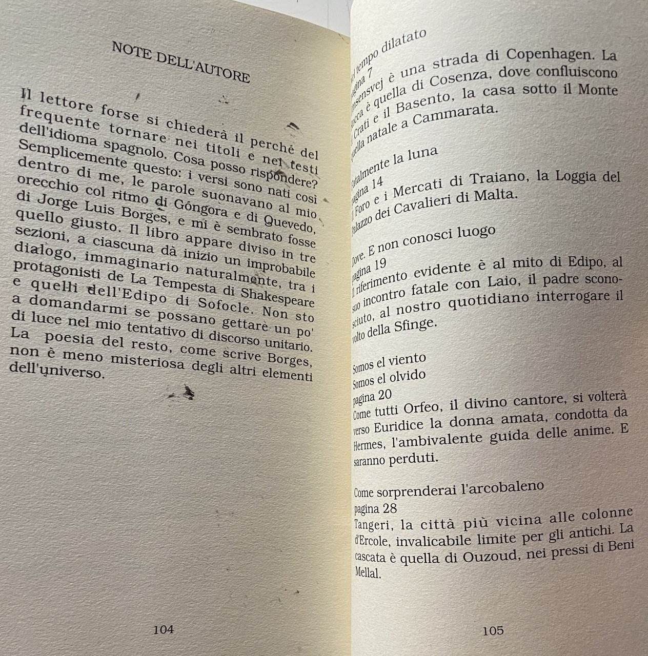 Soggetti: Raccolte poetiche, Poesie, Poeti italiani, Letteratura contemporanea, Novecento, Libri rari fuori catalogo, Collezionismo, Critica, Spagnolo, Lirica, Mitologia, Giocasta, Tiresia, Marrakech, Edipo, Flusso, Tikal, El Mundo Perdido, Frammenti, Tempo, Liriche, Suite éternelle, Amore, Oblio, Olvido, Quartetto, Luna, Voce, Ariel, Maya, Guatemala, Goethe, Che io pianga lasciate, Teseo, Arianna, Minotauro, Minareti, Sfinge, Orfeo, Euridice, Antologie, Anni Ottanta, Città, Poetry collections, Poems, Italian poets, Contemporary literature, Twentieth century, Rare vintage books out of print, Collecting, Criticism, Spanish, Lyrics, Mythology, Jocasta, Tiresias, Oedipus, Flow, Fragments, Time, Lyrics, Love, Oblivion, Quartet, Moon, Voice, Let me cry, Theseus, Ariadne, Minotaur, Minarets, Sphinx, Orpheus, Eurydice, Anthologies, Eighties, City