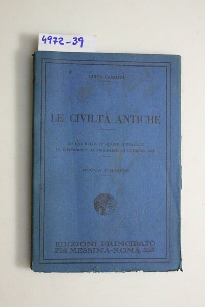 Le civiltà antiche.Ad uso della Iv classe ginnasiale in conformità ai programmi 14 ottobre 1923