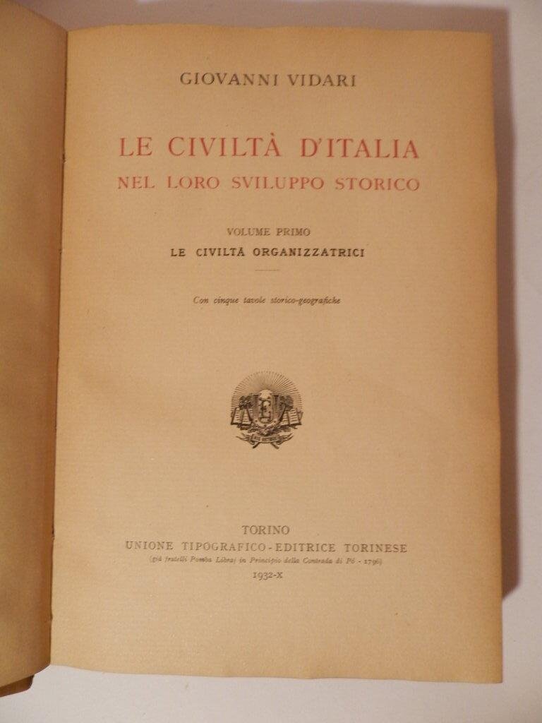 Le civiltà d'italia nel loro sviluppo storico. I: Le civiltà organizzatrici. II: Le civiltà liberatrici