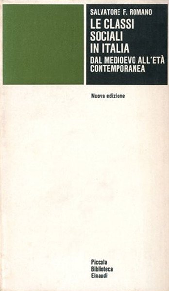 Nuova edizione. XVI, 587 p. ; 18 x 10 cm. Piccola biblioteca Einaudi. "La storia delle classi sociali è anche la storia della lenta ascesa dei ceti diseredati, e del sorgere di quei contrasti che, manifestatisi nell'urto con i dirigenti liberali del Rinascimento, si protraggono fino ai nostri anni." I nuovi capitoli riguardano le origini del movimento operaio e contadino, le lotte di classe e il mutamento politico nel periodo seguente alla prima guerra mondiale, le strutture politiche ed economiche del regime fascista. Brossura editoriale, coperta in cartoncino flessibile a colori bianco/nero e verde, leggeri segni del tempo al dorso ma complessivamente libro in ottimo stato. Codice libreria 1312.