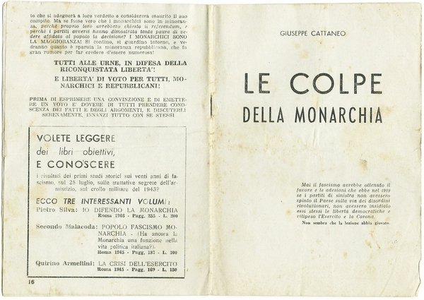 Tutti alle urne in difesa della riconquistata libertà! Roma, 1946. Fascicolo in brossura editoriale con lievi fioriture del tempo alle copertine. 12x17; pp.16. Buono stato. ,