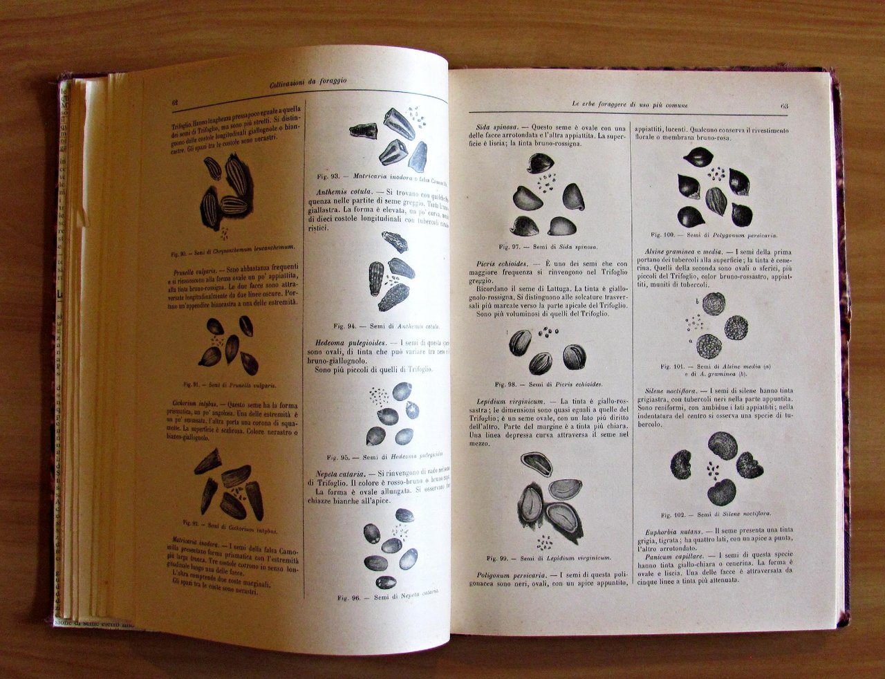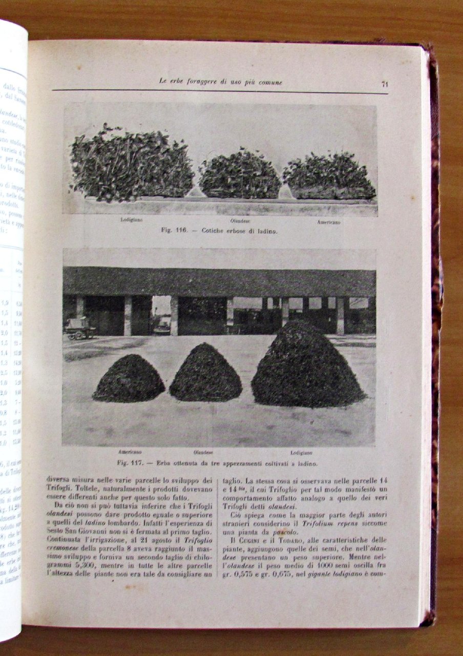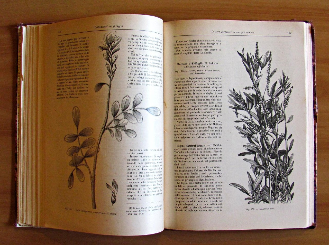 Nuova Enciclopedia Agraria Italiana. Parte Quarta. Le coltivazioni. Le coltivazioni da foraggio. Illustrazioni anche fotografiche in b/n. U.T.E.T. - Torino, 1928. Legatura coeva in mezza tela muta con lievi usure del tempo agli angoli delle sole copertine. Ritagli di articoli risalenti (risalenti agli anni '60), incollati ai risguardi. L'interno presenta alcune sottolineature colorate ma freschissimo. 19x27; pp.294. BUONISSIMO STATO , Molto buono (Very Good)
