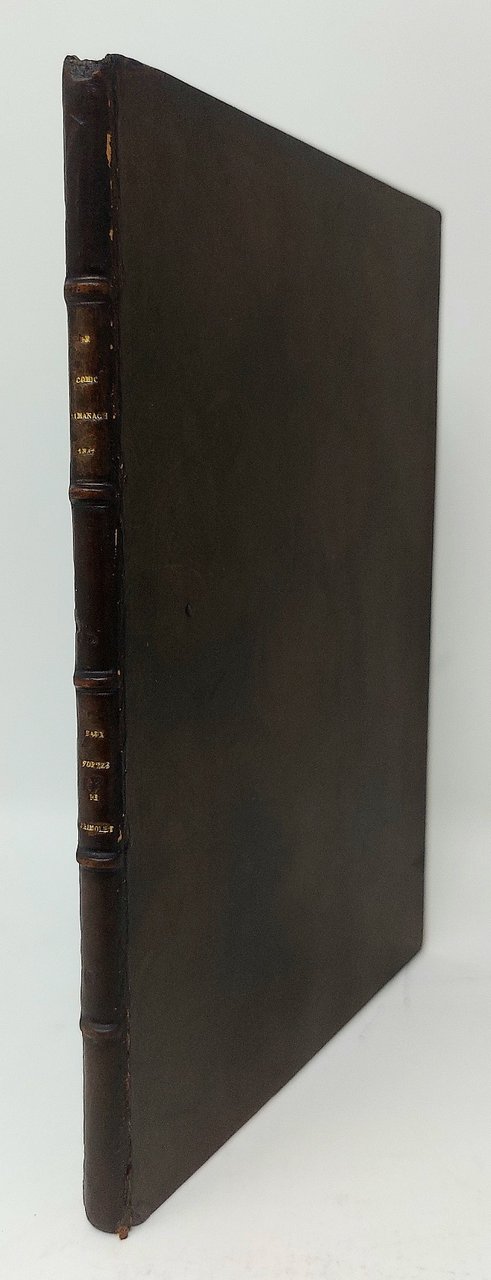 >in-16, legatura del tempo in pelle, titolo in oro al dorso, copertine editoriali conservate. Esemplare contenente occhietto, titolo e bella serie di 12 acqueforti originali con legenda dei mesi, scene umoristiche e animate di vita. Trimolet (Parigi 1812-1843) nella sua breve vita fu noto pittore di costume e d'interni, disegnatore, incisore e litografo; dopo la sua morte, la pubblicazione de "Le comic-almanach" francese, uscito nel 1842-43, venne interrotta. Bell'esemplare. Carteret III, 172. Bénézit XIII, p. 797.