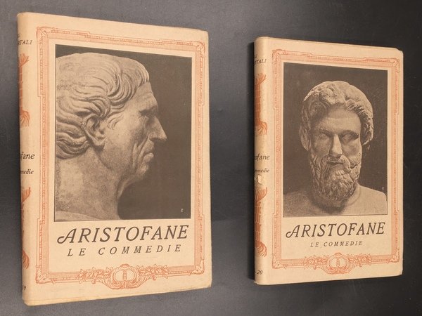 Le commedie. I primi due volumi, soltanto su 4: 1) Introduzione. Gli ACARNESI. I CAVALIERI. 2) Le NUVOLE. I CALABRONI. La PACE. Traduzione con introduzione e note di Ettore Romagnoli. Collazionò il testo l'avv. Tommaso di Petta. Disegnò i fregi il prof. Cambellotti.