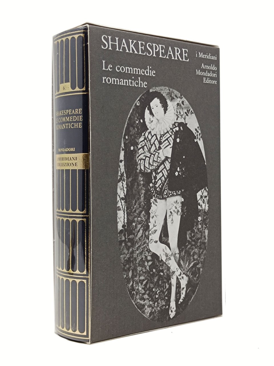 a cura di Giorgio Melchiori. Mondadori, Milano, 2005. Collana 'I Meridiani - Collezione'. Edizione abbinata ai settimanali del gruppo Mondadori. Formato: 11 x 18 cm circa. Pagine: XLIV + 1121 + [7]. Ottimo esemplare. Brossura editoriale cartonata rigida con sovraccoperta in acetato trasparente e cofatto editoriale in cartoncino leggero, illustrato su entrambe le facciate. All'interno del volume sono riportate le seguenti commedie: Il mercante di Venezia; Molto rumore per nulla; Come vi piace; La dodicesima notte; Le allegre comari di Windsor. Le commedie sono riportate in lingua italiana con testo in inglese a fronte.