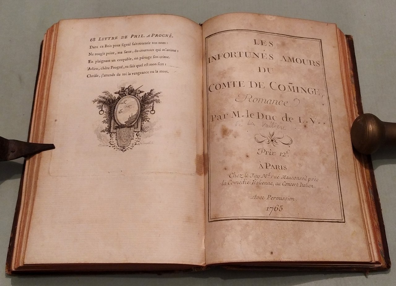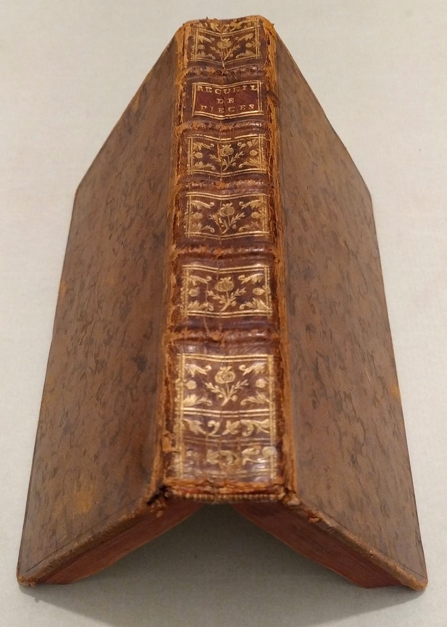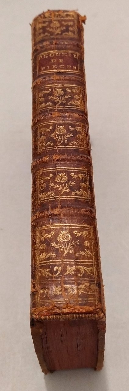 ARNAUD François d'. Le comte de Comminge drame en trois actes et en vers; précédé d'un discours préliminaire et suivi des Mémories du Comte de Comminge. A Londres et se trouve à Paris, 1764. Pp.16, 215. 1 planche. Unito: idem. Lettre du Comte de Comminges a sa mere, suivie d'une lettre de Philomele a Progné. A Paris, Jorry, 1764. Pp. 68. 2 planches, 2 vignette, 2 culs de lampe di Eisen, incisi da De Longueil. Unito: LA VALLIERE. Les infortunés amours du Comte de Cominge. A Paris, Jay, 1765. Pp.12. Il testo in corsivo ed 1 pagina con musica. Unito: ARNAUD. Portrait de Feu Monseigneur le Dauphin. Paris, Lottin, 1766. Pp.39. Frontespizio e cul de lampe di Cochin incisi da Migger. 2 eleganti vignette raffiguranti il Delfino da bambino e da adulto di Lampereur. Ampi margini. Edizione su carta grande d'Olanda in 8vo. Legatura in bazzana coeva, dorso a cordoni con tassello, ricchi fregi in oro. Raccolta di piéces in versi ed in prosa. Cohen 100, per altra edizione.
