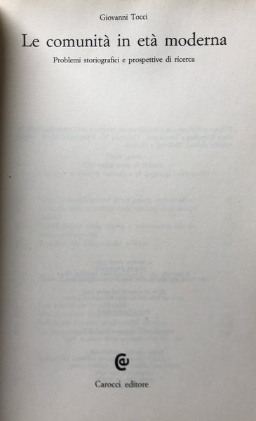 Titolo: Le comunità in età moderna. Problemi storiografici e prospettive di ricerca