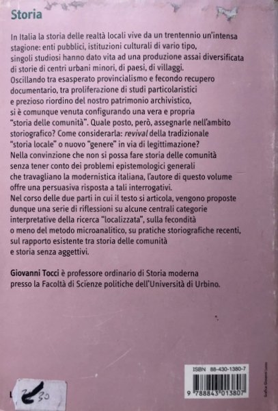Soggetti: Studi storici, Università, Storia moderna e contemporanea, Storiografia, Saggi, Problemi storiografici, Ricerca, Medioevo, Comunità, Gruppi sociali, Conflitti, Guerre, Politica, Storia culturale e sociale, Epistemologia, Interpretazione storica, Comuni, Centri urbani, Città, Paesi, Villaggi, Microanalisi, Evoluzione, Stati italiani, Principati, Ancien Régime, Geografia, Ceti, Demografia, Libri Vintage, Fuori catalogo, Historical studies, University, Modern and contemporary history, Historiography, Essays, Historiographical problems, Research, Middle Ages, Communities, Social groups, Conflicts, Wars, Politics, Cultural and social history, Epistemology, Historical interpretation, Municipalities, Urban centers, Cities, Countries, Villages, Microanalysis, Evolution, Italian States, Principalities, Geography, Demography, Books out of print