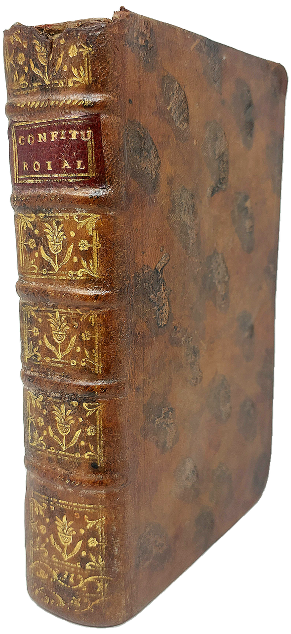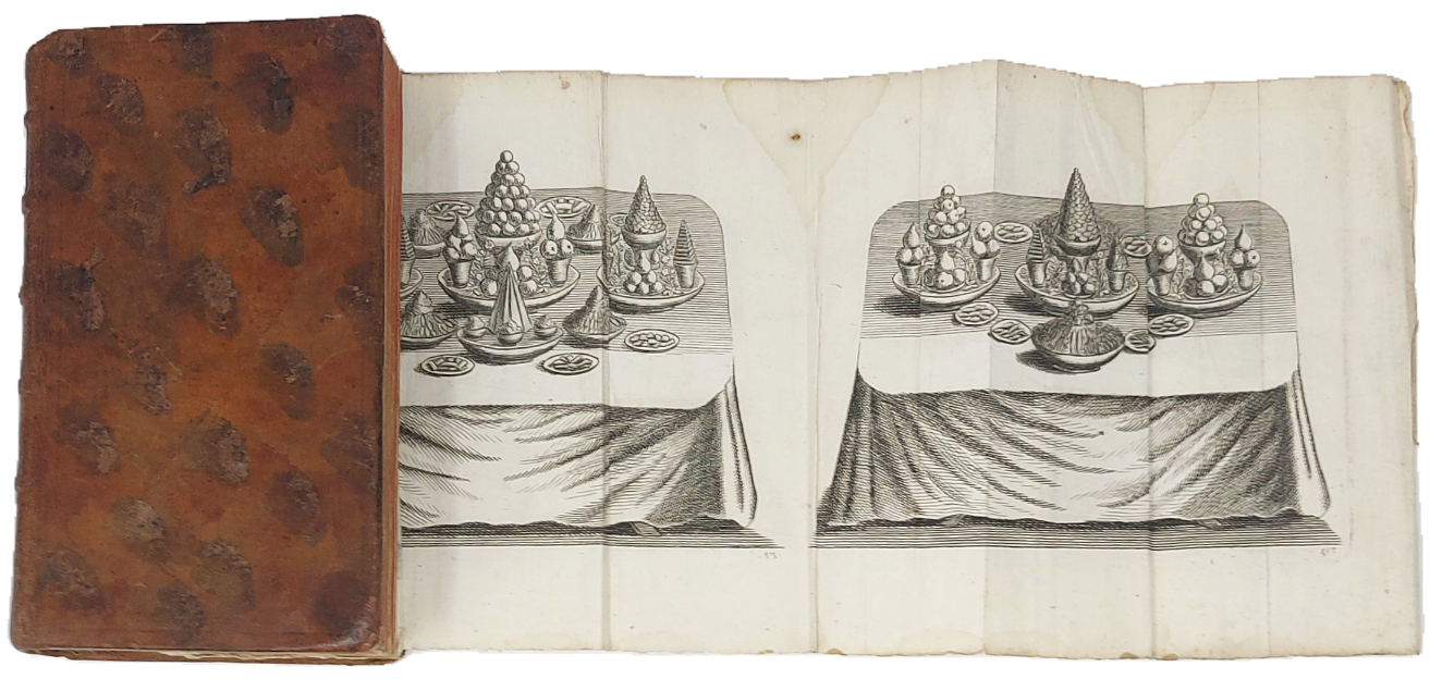 >in-12, pp. XVI-518, ff. (19, ultimo bianco), legatura coeva piena pelle, dorso a nervi con titolo su tassello al dorso e fregi floreali in oro, tagli rossi. Con tre grandi e belle tavole incise in rame, ripiegate fuori testo. Quarta edizione, la più completa di questo manuale culinario specializzato in dolci e liquori, di fondamentale importanza, assai vasto e preciso. Tutta la ''confetteria'' del XVIII secolo è dettagliatamente descritta, con particolare riguardo al trattamento di ogni tipo di frutta. Ex-libris manoscritto del tempo sul primo foglio ''Ce livre appartient à Ms. de Vachon''. Massialot nacque a Limoges nel 1660 e diresse le tavole delle più illustri nobli famiglie di Francia. Bello e raro esemplare, difetti marginali a due delle tavole, antica nota di possesso alla controsguardia anteriore. Vicaire, Bibliographie p.gastronomique, p. 455. Bitting 584.