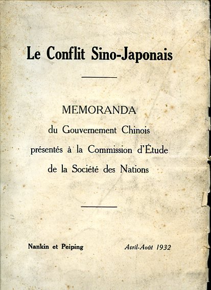 Le Conflit Sino - Japonais. Memoranda du Gouvernement Chinois présentés à la Commission d'Étude de la Société des Nations. Nankin et Peiping. Avril - Août 1932