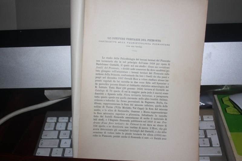 COD 2767, , LE CONIFERE TERZIARIE DEL PIEMONTE CONTRIBUTO ALLA PALEOFITOLOGIA PIEMONTESE CON UNA TAVOLA 1894, , , COPERTINE MUTE, , 1894, , , PINUS PARONAI ASTIANO INFERIORE ?, COLLEZ MUSEO GEOL TORINO, SUBGEN TAEDA ENDL, PINUS SATURNI UNG, PINUS PALAEOSTROBOIDES E SISMONDA, PINUS ECHINOSTROBUS SAP, ELVEZIANO SAN GRATO TORINO COLLEZ ROVASENDA, ETC., DA PAG 706 A PAG 746, GNETACEAE CON UNA TAVOLA ILLUSTRATA FUORI TESTO