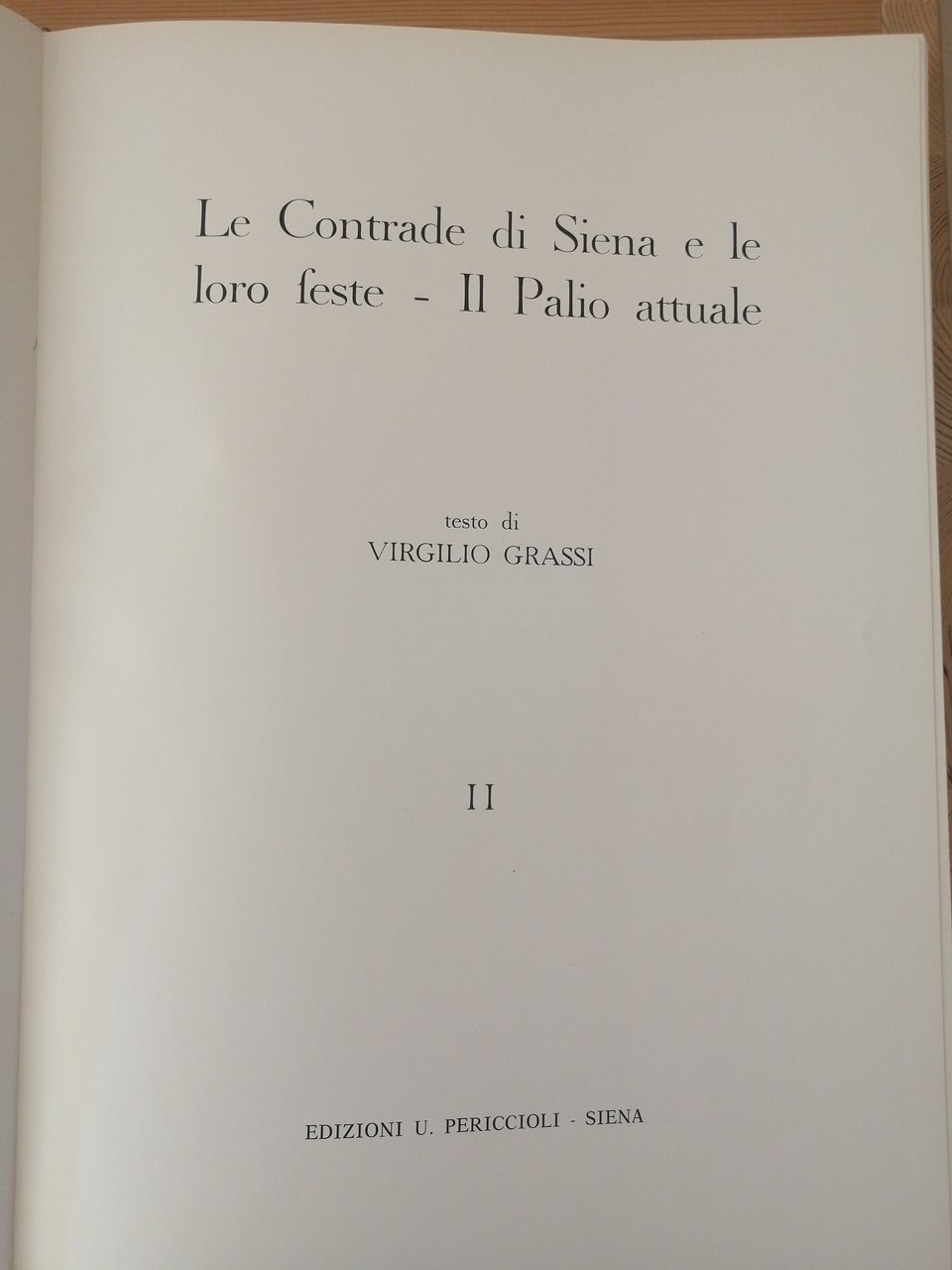Esemplare n° 1264. Ristampa della pregevolissima opera di Virgilio Grassi, amatore e appassionato del Palio di Siena.