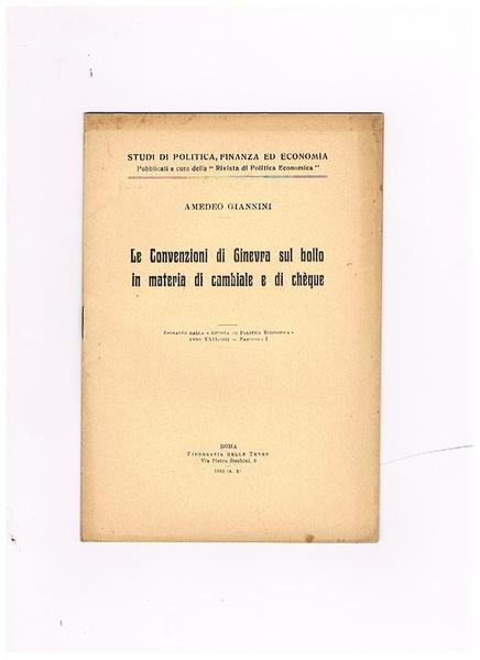 Le Convenzioni di Ginevra sul bollo in materia di cambiale e di chèque. Estratto dalla "Rivista di poilitica economica" anno XXII-1932 - fascicolo I.
